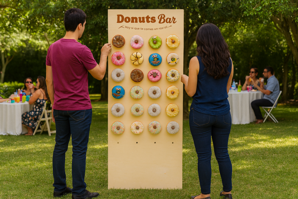 Ofrecemos montaje completo, personalización del panel y donuts frescos de alta calidad. El Donut Bar es la opción perfecta para sorprender a todos los asistentes y generar contenido visual increíble para redes sociales.