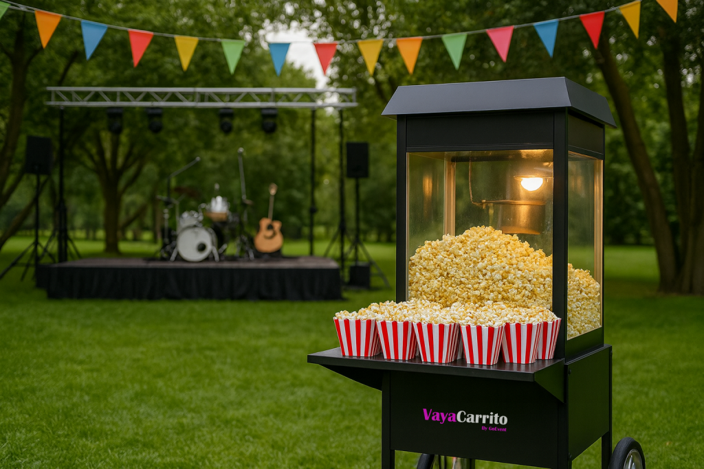 Reserva ahora tu carrito de palomitas y convierte tu evento en un momento lleno de aroma, sabor y diversión.